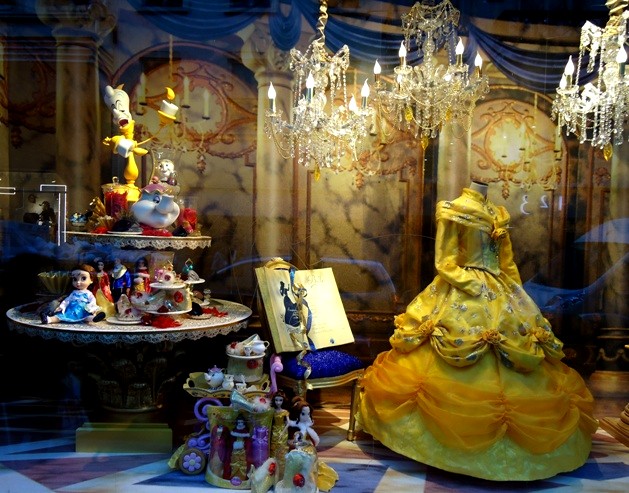 certaines vitrines recomposent les décors des princesses Disney : Cendrillon,